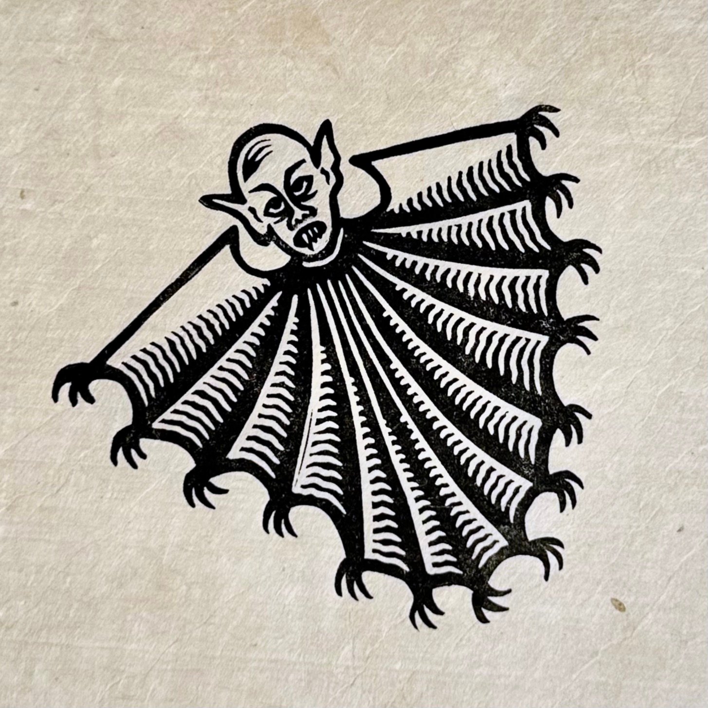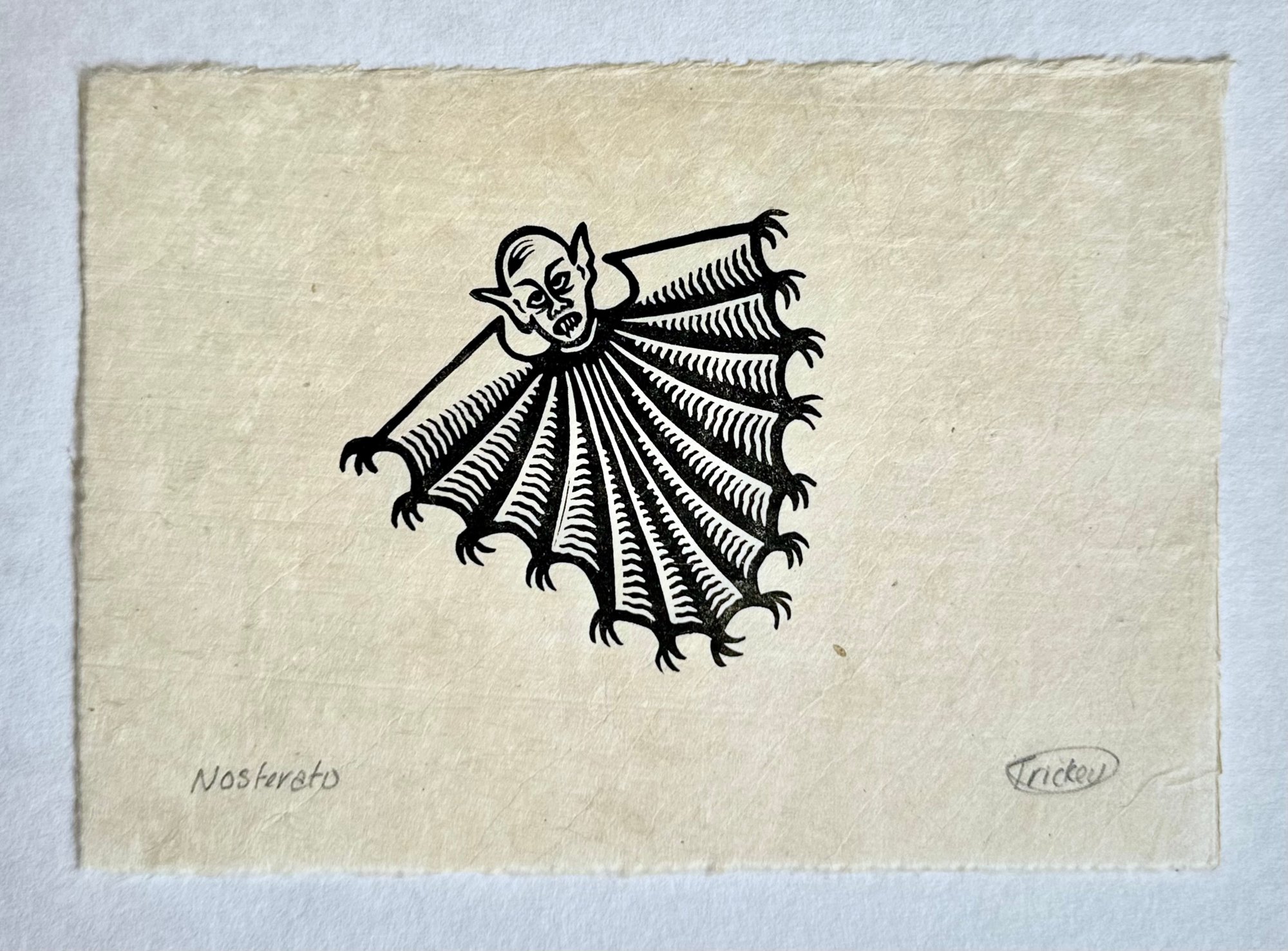 Open edition lino print in black ink.