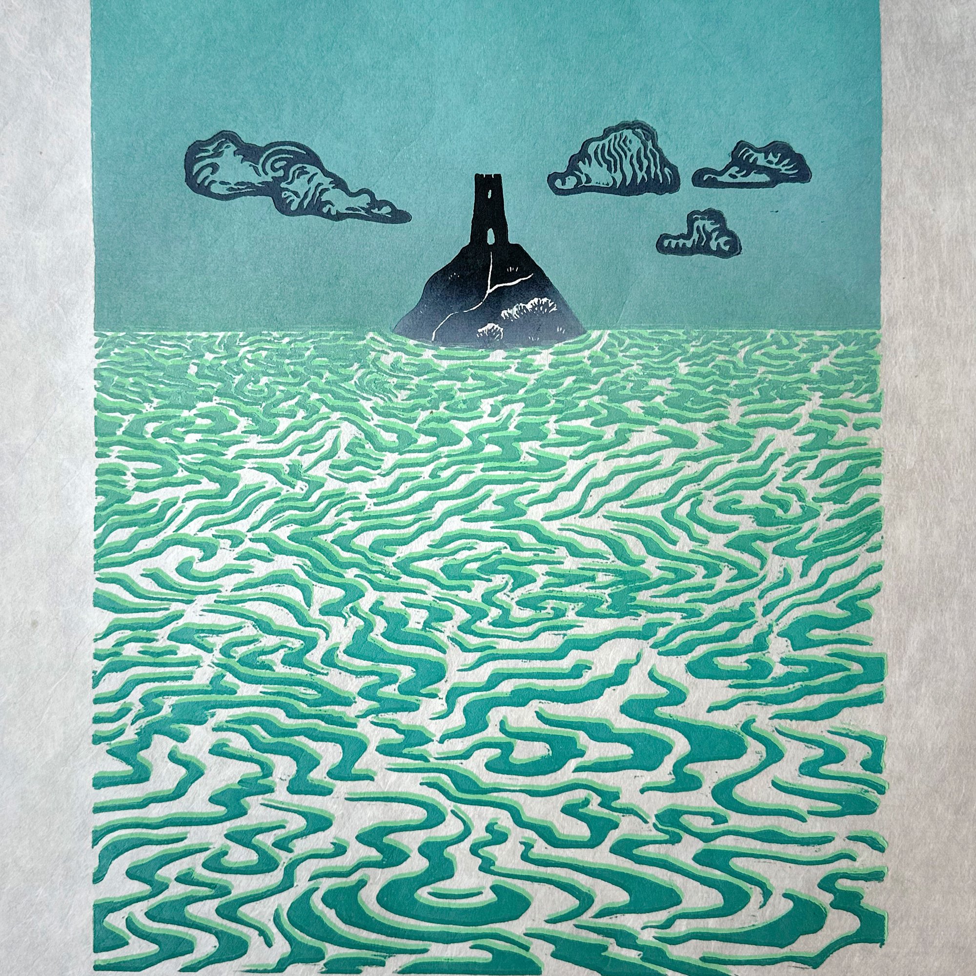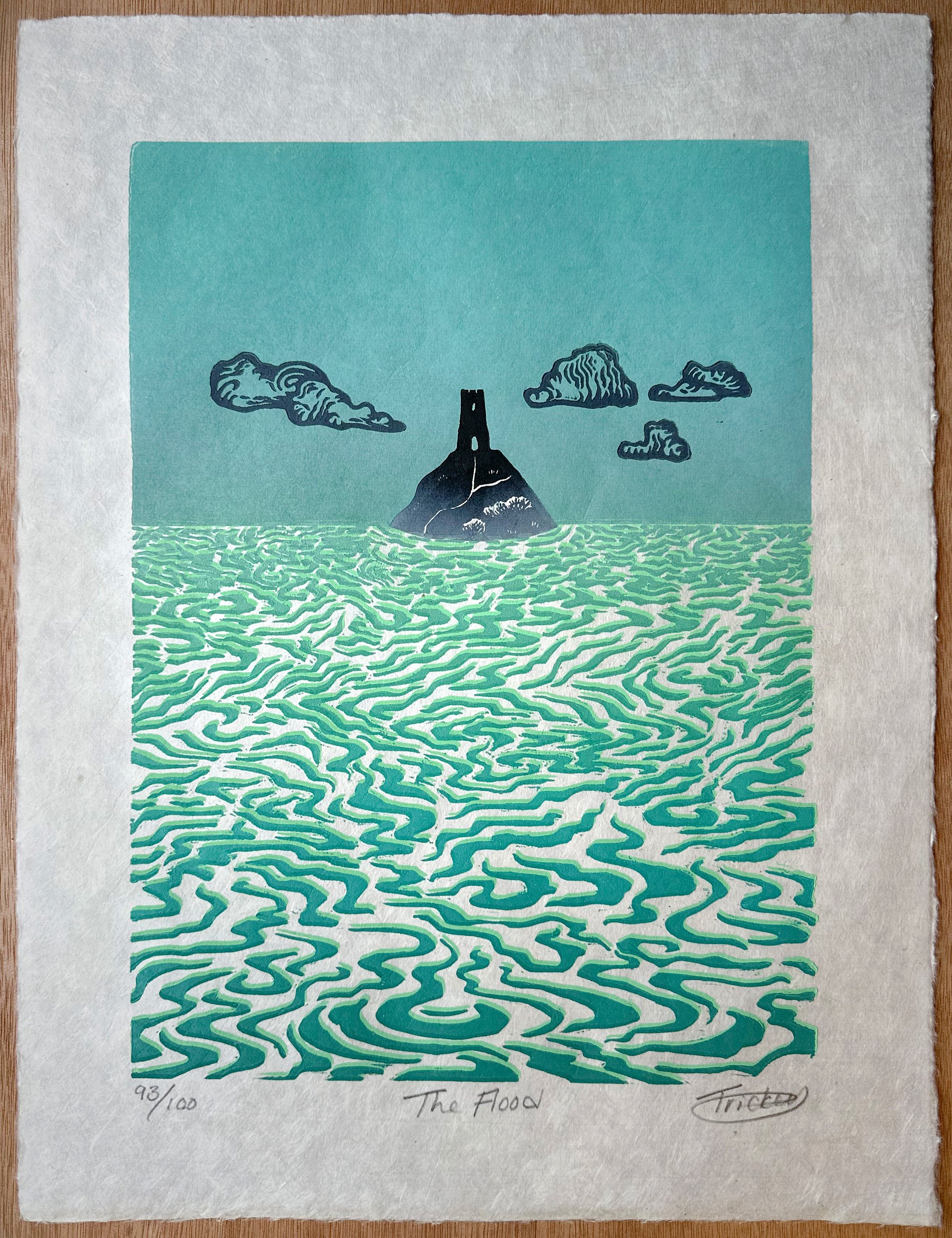 Hand carved lino cut measuring 28 x 37cm (printed area is approximately 22 x 30cm). Three layer print on Nepalese handmade paper. Edition of 100.