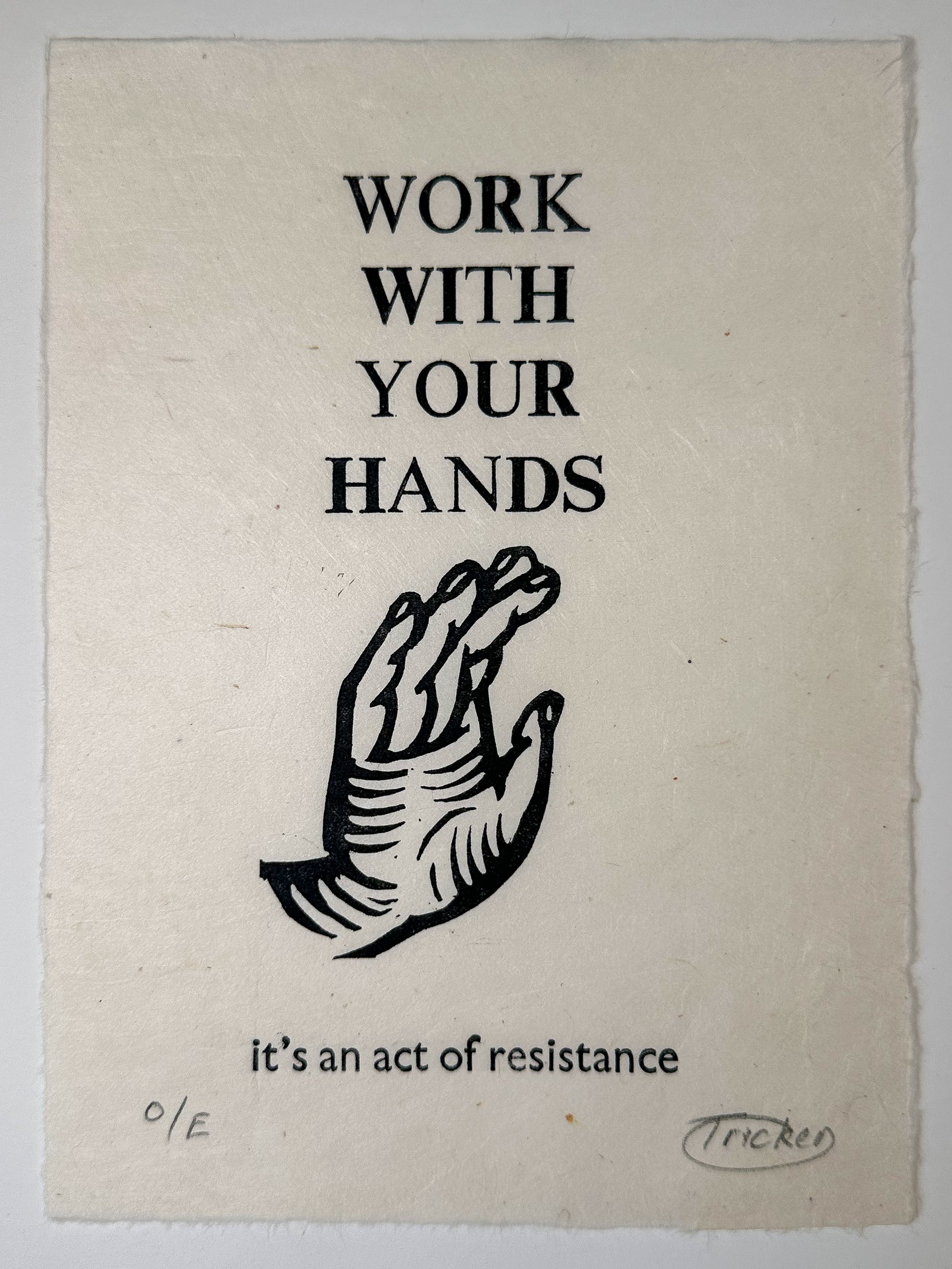 Open edition lino cut and letterpress type in black ink on 100 gsm Nepalese handmade paper and measuring roughly 15 x 21cm/A5 size.